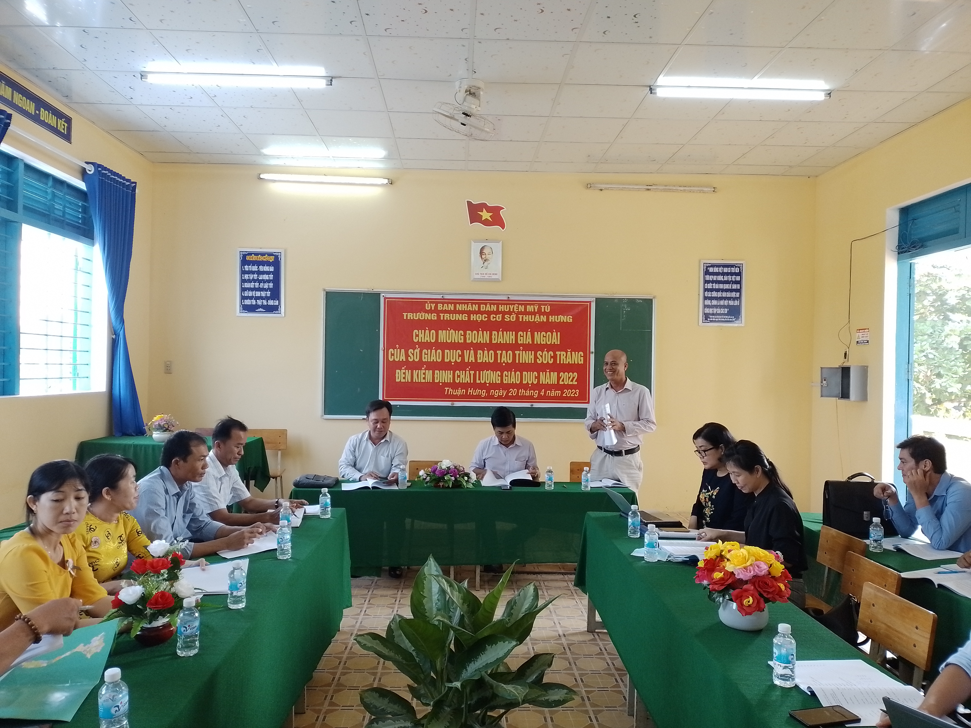 Đoàn đánh giá ngoài của Sở GD&ĐT Sóc Trăng do đồng chí Danh Hoàng Nguyên, Phó giám đốc Sở GD&ĐT làm Trưởng đoàn; cùng các thành viên đã có một ngày làm việc tích cực tại trường THCS Thuận Hưng, huyện Mỹ Tú.