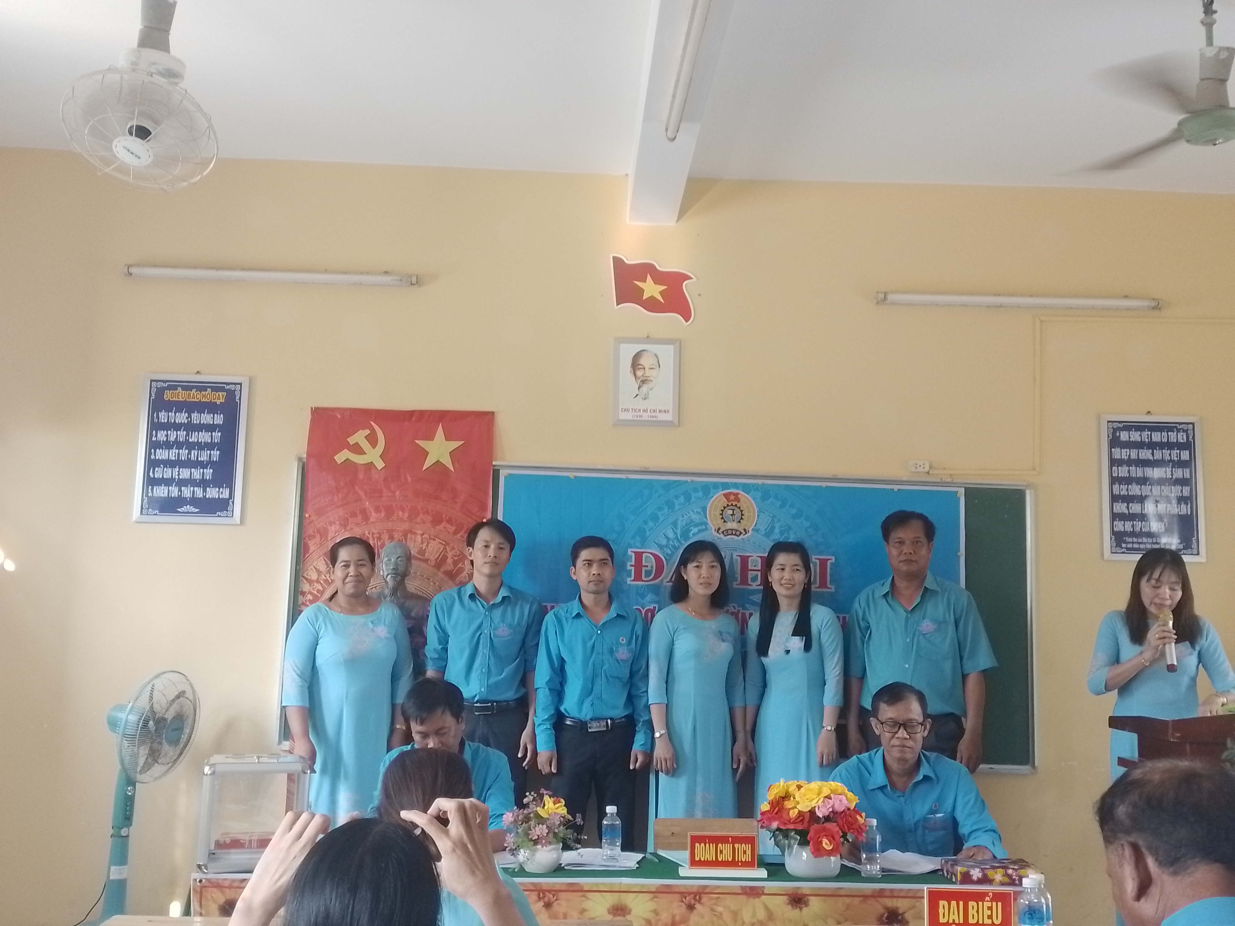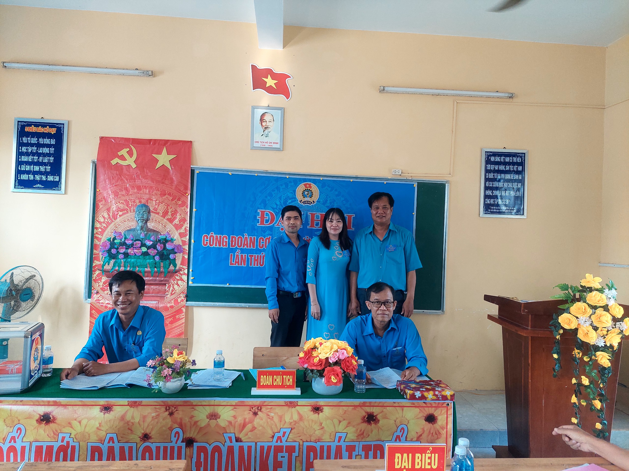 Dự đại hội có đồng chí Ngô Thanh Hùng, Ủy viên Ban Thường vụ LĐLĐ huyện, phó Giám đốc Bảo hiểm xã hội huyện. Ban Giám hiệu nhà trường và toàn thể công đoàn viên nhà trường.