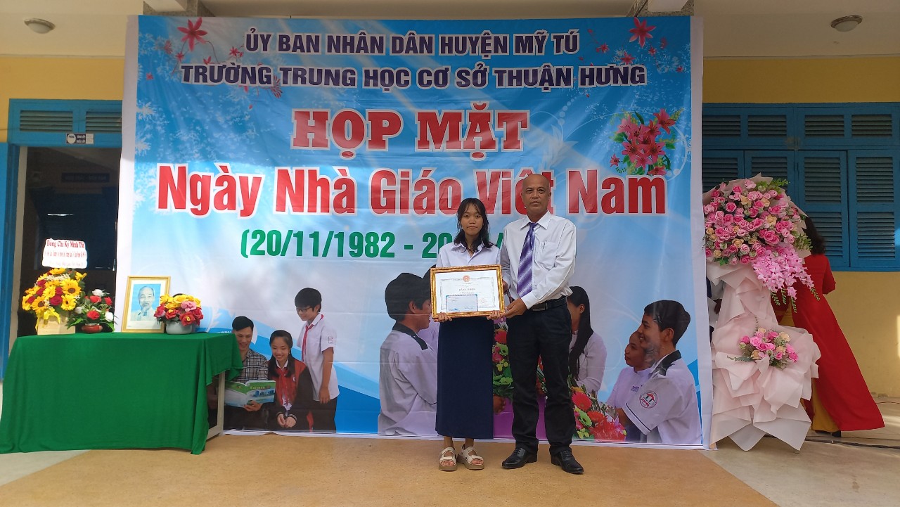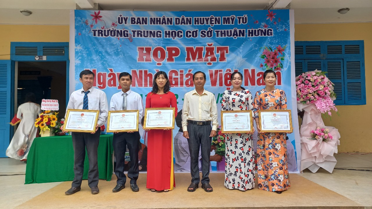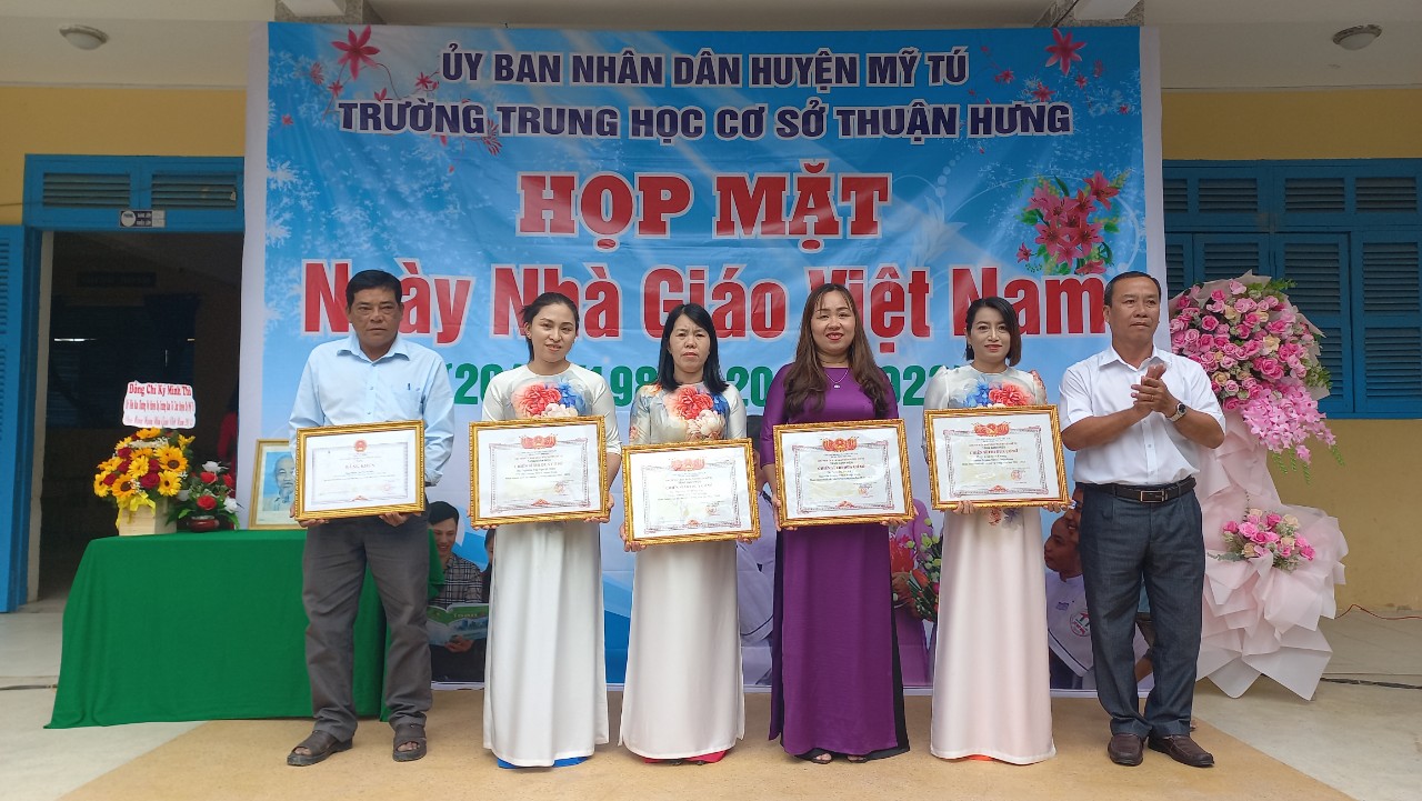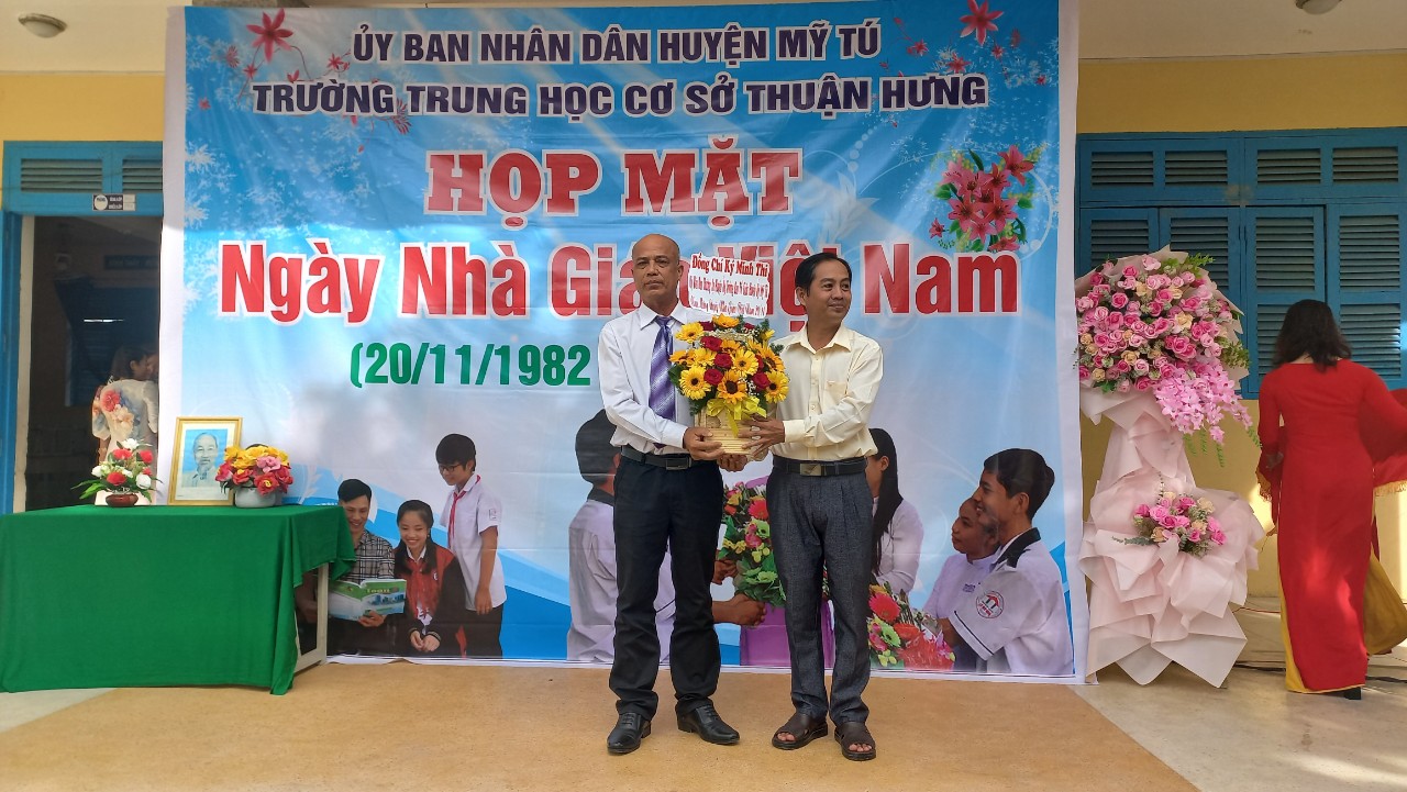 Ngày 19/11, Trường THCS Thuận Hưng tổ chức họp mặt kỷ niệm 41 năm Ngày Nhà giáo Việt Nam (20/11/1982 - 20/11/2023). Đến dự có các đồng chí: Phan Thanh Vũ, Phó trưởng ban Tổ chức huyện ủy; Lâm Mê Rinh, Chủ tịch Hội nông dân huyện Mỹ Tú; Phạm Minh Kết, Bí thư Đảng ủy xã Thuận Hưng; Lý Bình Thanh, Chủ tịch Mật trận tổ quốc xã Thuận Hưng; các đồng chí nguyên lãnh đạo xã Thuận Hưng, các nhà giáo đã về hưu, chuyển công tác; Ban đại diện cha mẹ học sinh cùng tập thể Cán bộ quản lý, giáo viên của nhà trường cùng tham dự.